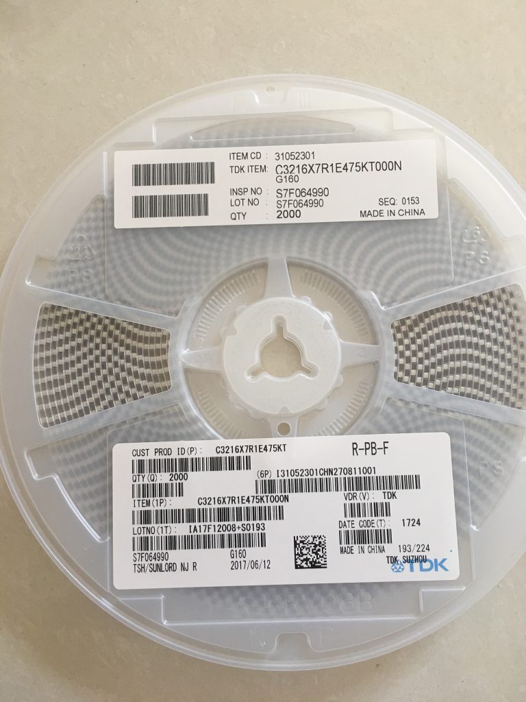 一般來說,當你得到TDK的料盤時,會有一個電容器TDKlogo。分上下標記,上標為小標記。下標是一個很大的標記。